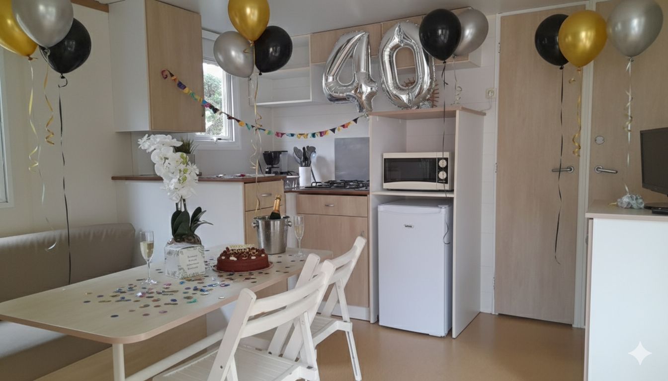 Fêtez un événement spécial au Camping Mahana sans vous soucier de la logistique ! Pour un effet « waouh » dès l’ouverture de la porte, nous préparons votre mobil-home pour une arrivée festive et personnalisée.